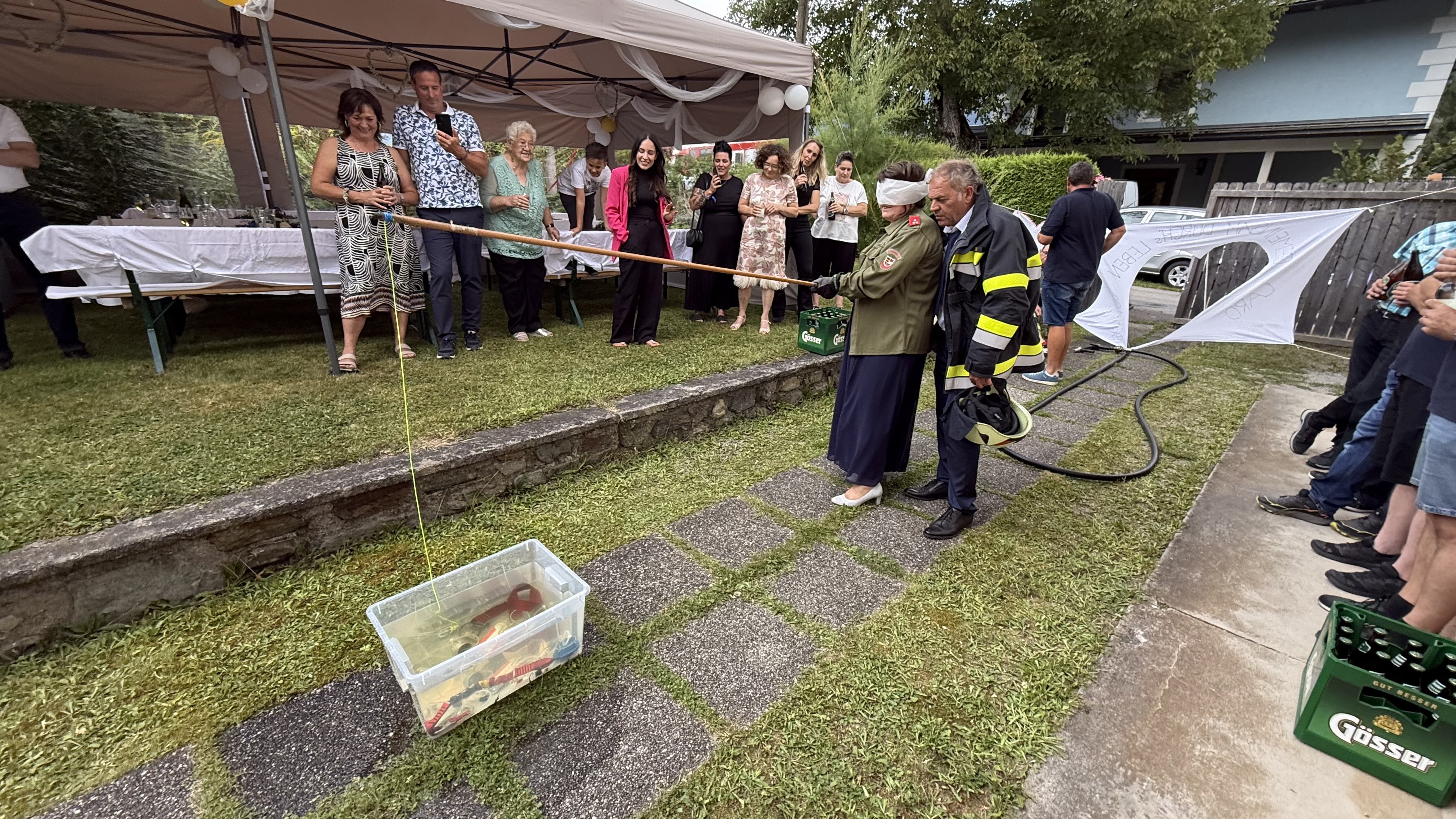 Es galt, aus einem mit Wasser gefüllten Behälter diverse Materialien mit einer Angel herauszuangeln. Die Schwierigkeitsgrade dazu variierten von verbundenen Augen bis "lass das mal den Profi machen". Auf alle Fälle war es eine Gaudi und im Nachgang lud das Brautpaar noch zum Hochzeits-Buffet und Getränken ein.